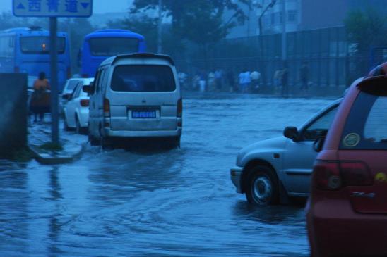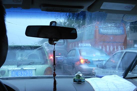 カーラジオでも天津の大雨と交通渋滞を伝えています。