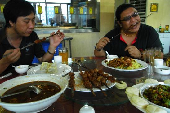 ウルムチでの夕食。次々と出してもらった料理はすべて肉料理。