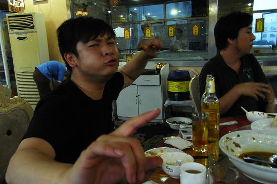右がヤマハ中国の房(ファン)さん。美味そうに食べますね~(笑)。