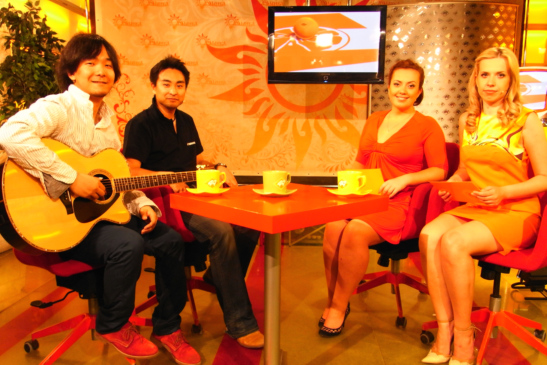 リハーサル後に地元TVが取材をしてもらえるとのことで、一行はTV局へ。