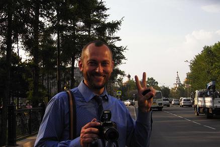一緒に写っているのはヤマハ・ロシアのスタッフ、ピョートルさん。