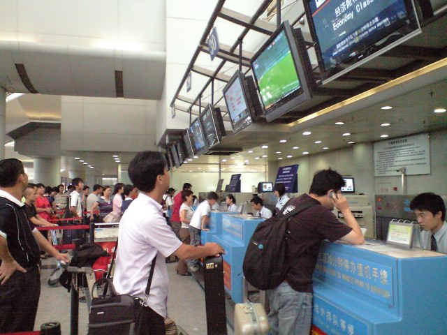 空港のチケットカウンターではまたもや、なにやらトラブッている様子。ジャンイーさんが必死に対応してくれています。