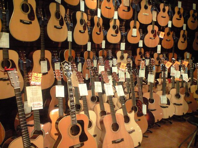高価なアコーステイックギターがずらり!ほんまに多いなぁ。