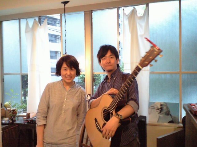 写真は、ライブ後mizucaでプチ打ち上げ。マスターと撮影の吉田さん。