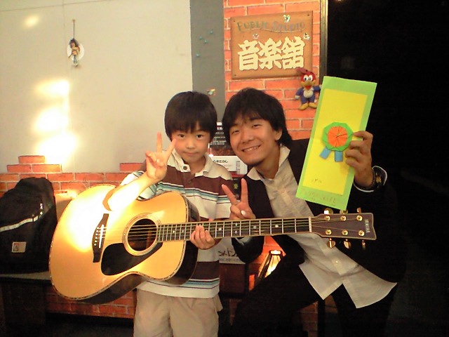 写真は、音楽館へきてくれたしゅうじくんと。