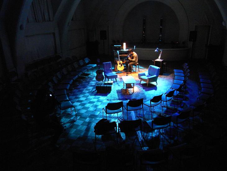 写真はリハーサル風景。あの神聖なステージにひとつの“部屋”を用意しました。