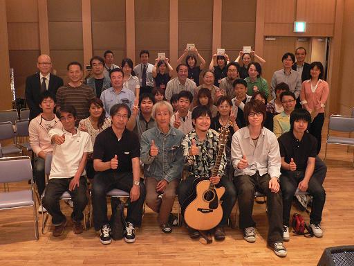 写真はライブ終了後、お客さん、スタッフの皆さんと。