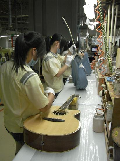 塗装をする人、磨く人、マイクを取り付ける人、弦を張る人、検品をする人・・。