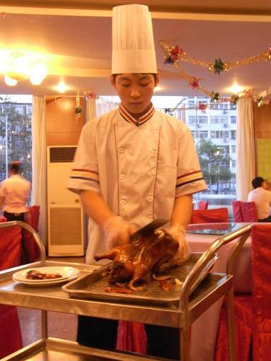 中華レストラン。北京ダックを注文すると、