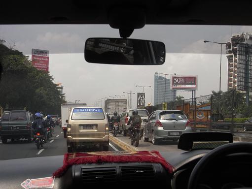 緑色の見覚えのあるバス。なんと京都の市バスが、インドネシアの道路を走っていました。