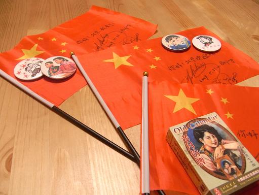 ①中国のミニ国旗(サイン、中国語メッセージ入り)、