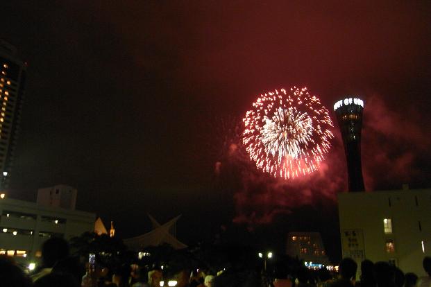 夜は集まったみんなで「神戸みなと花火大会」を見に行きました。