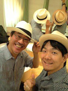 写真は楽屋にて。パナマ帽をかぶった二人。