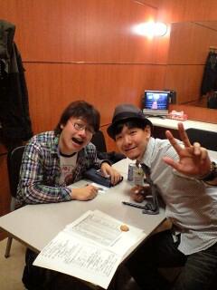 写真は楽屋で、ドラムスの河原井みつるさんと。
