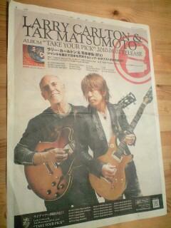 「ラリー・カールトン、タック・マツモト」の一面広告が目に飛び込む。
