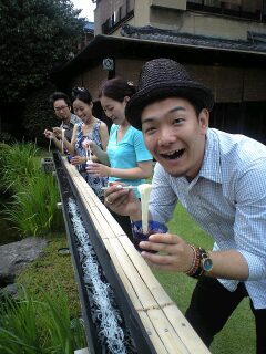 そして外では流しそうめん!!夏やわ~!!京都の納涼満喫です。