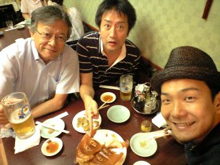 写真はヤマハのギターでいつもお世話になっている田中重徳さん、田坂さんと。