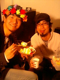 musica aunoun 岸本想太さんと。ケーキを茶碗で食っています。