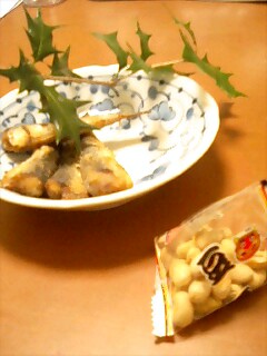 ヒイラギとイワシと、節分豆。