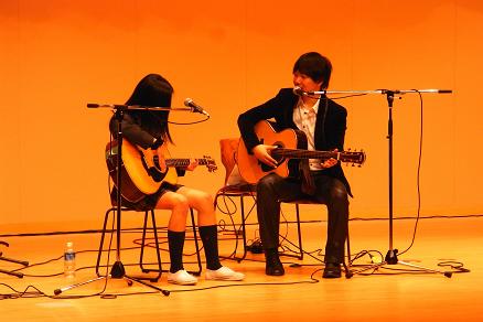 写真は、“はじめてのギター”コーナー。生徒のみんなと、2コードでセッションしているところ。