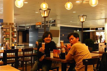 せっかくのドイツなので、ビールとソーセージで乾杯してます。