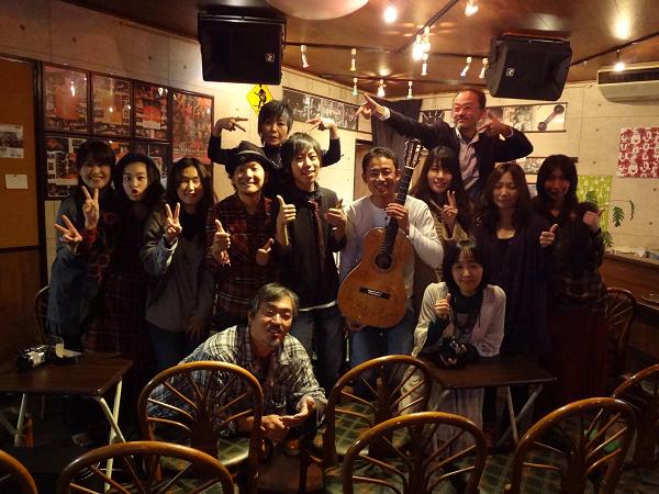 写真はライブ終了後、残ってくれたスタッフさん、お客さん達と。