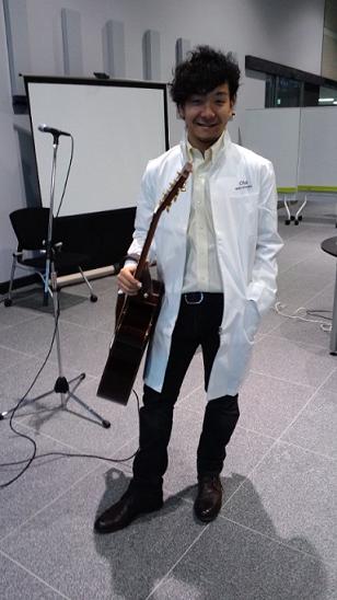 せっかく京大なので、僕も白衣をお借りしてライブしました!似合ってます?
