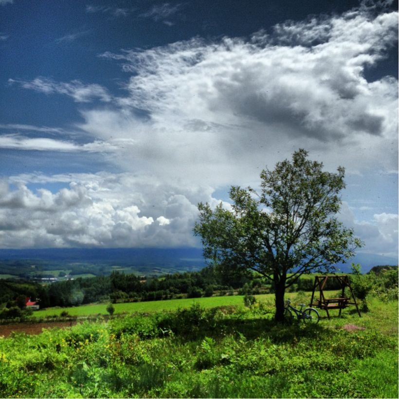 丘の上のペンション「じょう舎」からの富良野の眺め。