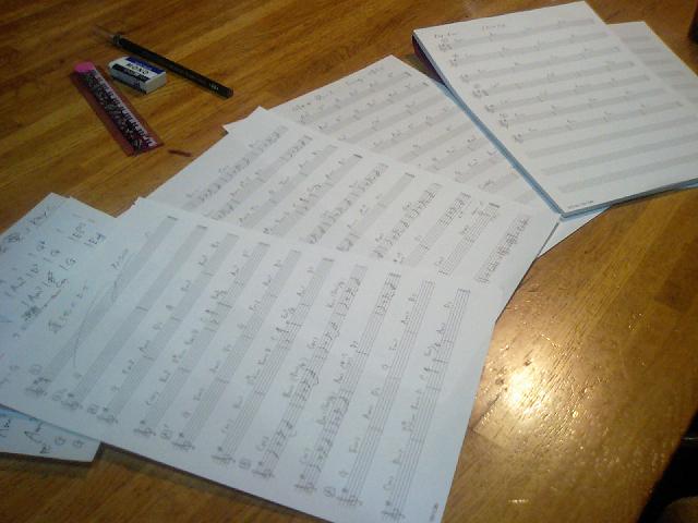 山中湖のスタジオにて。明日からの寿さんとのレコーディングにそなえて こつこつ譜面づくり。譜面、久しぶりに書いたなぁ。おもしろい。 「harukaze harmonics」ジャケットデザインもあがりました!!!よいです。すごくよいです。 近々、ホームページでもUPしようと思います。